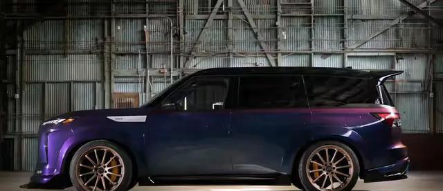 近日我们从海外获悉英菲尼迪QX80 R-spec版实车在SEMA车展上正式亮相了,新车基于日产途乐的F-Alpha平台打造,在外观上改装的相当炫酷,依旧配备了非承载式车身设计,这次最大的改动就是换装了GTR的双涡轮增压V6发动机,据说最大马力超过1000匹宝牛配,百公里加速在3秒以内,妥妥的性能猛兽。